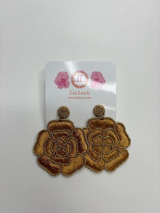 Gold Beaded Fabric Rose Statement Earrings - Sample Sale Final Sale