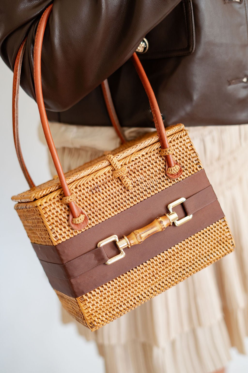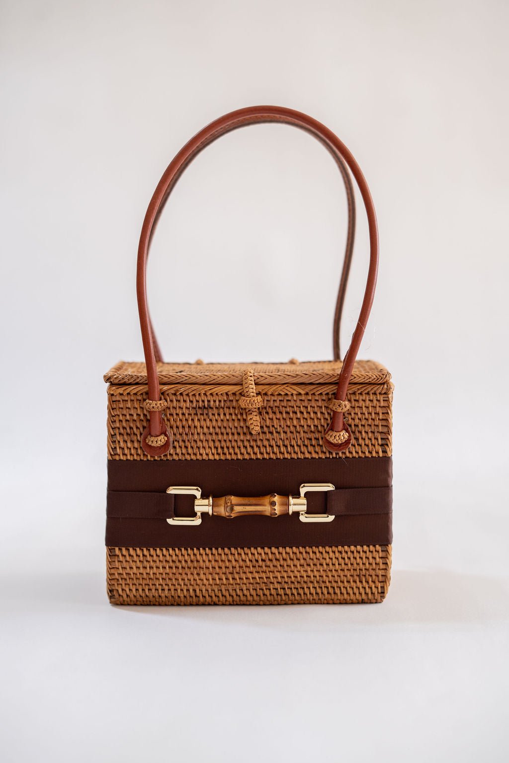 The Lisi Lerch Bali Bag collection is all handwoven by local artisans of the Tenganan region of Bali. Each weaver creates these works of art by using ata grass, a vine indigenous to the foothills of volcanoes on their beautiful Indonesian Island. The bags are then smoked in a coconut and honey fire to achieve their luscious golden hue.