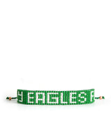 • Threaded Kelly Green Bracelet with an adjustable Tassel Closure