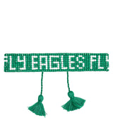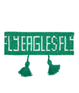 - Threaded Kelly Green Bracelet with an adjustable Tassel Closure