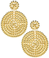 • Elevate your accessory collection with our Disk Earrings, available in elegant shades of white, champagne, gold, silver, and pearl. Each earring features a meticulously crafted disc adorned with high-quality beads, offering a textured and sophisticated look. These versatile earrings are perfect for adding a touch of refinement to both casual and formal outfits, making them a must-have addition to your jewelry wardrobe. Designed for comfort and style, the Beaded Disc Earrings are lightweight and easy to wear, ensuring you can enjoy them all day or night.