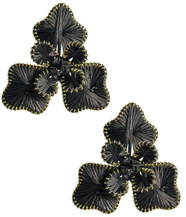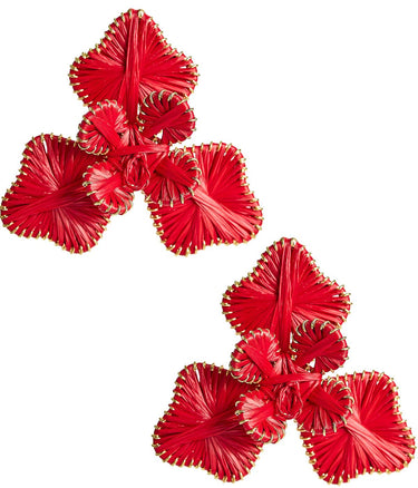 Add a touch of elegance and charm with these Raffia-Wrapped Flower Earrings. Designed with multiple raffia-wrapped flower petals, these statement earrings are perfect for elevating any outfit. Available in a variety of colors, they offer a versatile and stylish option for both casual and dressy occasions. Whether you're looking to enhance your everyday look or make a bold impression, these earrings are a must-have accessory for your jewelry collection.