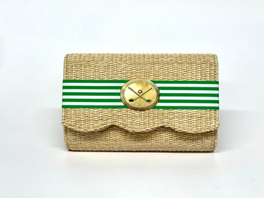 Straw Scallop Ruby - Green Candy Band- Gold Oval with Golf Clubs