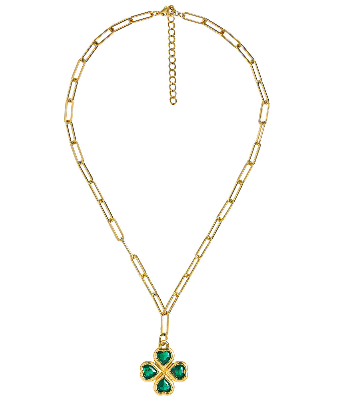 Jamie Clover Necklace with 18k Gold-Plated Paperclip Chain. Elevate your everyday style with this sophisticated Jamie Clover Necklace, featuring a delicate clover pendant suspended from a distinctive paperclip chain. Crafted with 18k gold plating, this piece combines timeless elegance with contemporary design. The unique chain link style adds visual interest while the clover charm brings a touch of luck and charm to your collection. Perfect for layering or wearing solo, this versatile necklace transitions seamlessly from casual to formal occasions. An ideal choice for those seeking quality jewelry that makes a statement without compromising on comfort or durability.
