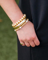 Bridget Bracelet Stack - 1 8mm Gold Beads Bracelet, 1 6mm Gold Beads with Freshwater Pearls & The Quinn - 3 Bracelet Stack