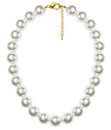 Our Birdie pearl necklace will have you feeling as glamorous as a classic Hollywood movie star. The Birdie will charm its way into your heart and your wardrobe. Dress up any night out on the town or elevate your day-to-day looks. Our 14” Birdie pearl necklace is the perfect staple piece for your jewelry collection. Glass hand beaded. 14 mm bead size with rhinestone magnetic clasp in brass gold. Single-strand necklace. Handle with care.
