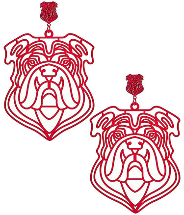 Show your team spirit in style with the Bulldog Earrings. These lightweight earrings feature a bold bulldog outline design, making them the perfect accessory for game days and sports events. The vibrant red color adds a pop of personality to your look, while the lightweight design ensures comfort all day long. Whether you're cheering for your favorite team or adding flair to a casual outfit, these bulldog earrings are a must-have for any fan looking to showcase their love with style.