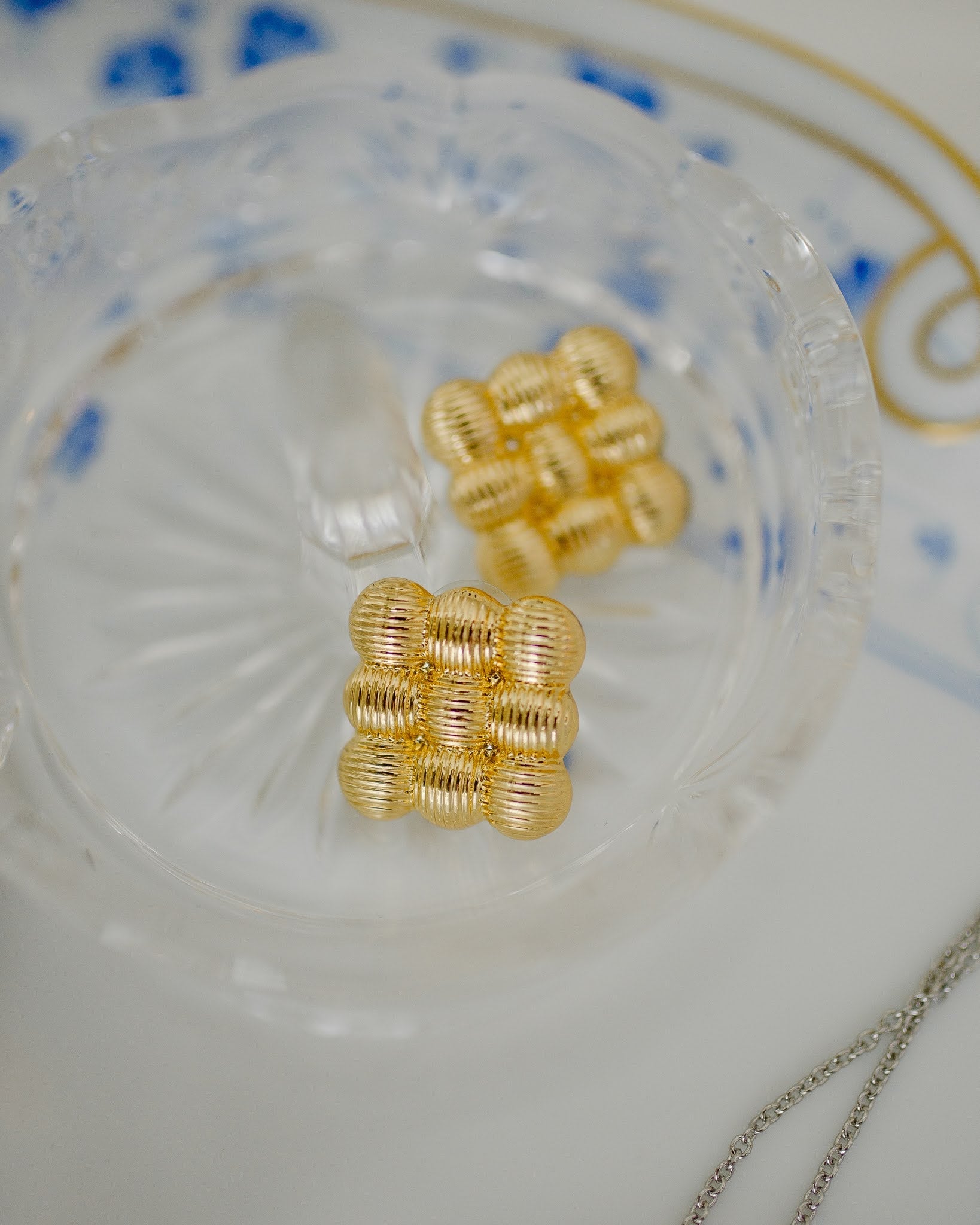 Add a touch of modern sophistication with the Ava, a bold gold stud designed to make a statement. Featuring a chic geometric design with a textured finish, these earrings bring effortless style and versatility to any look. Perfect for both day and night, the Dylan Earring elevates everything from casual outfits to cocktail attire. Lightweight and timeless, it’s the go-to accessory for those who love polished, standout jewelry. -