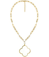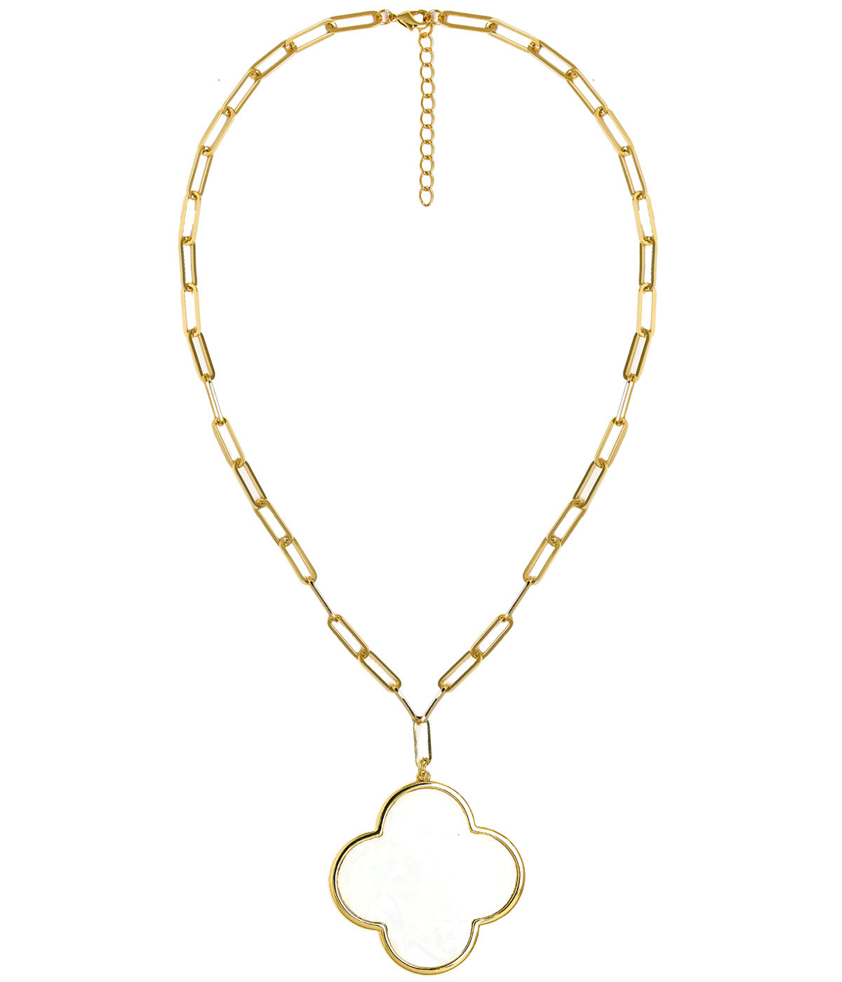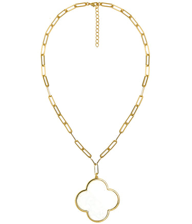 Riley Large Clover Shell Necklace - 18k Plated Paper Clip Chain