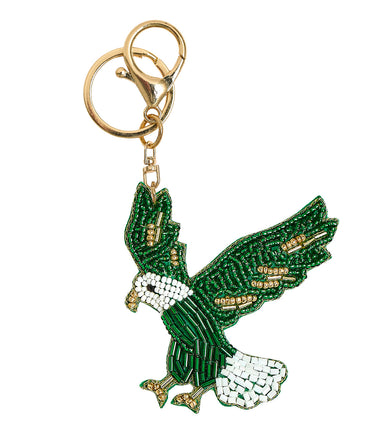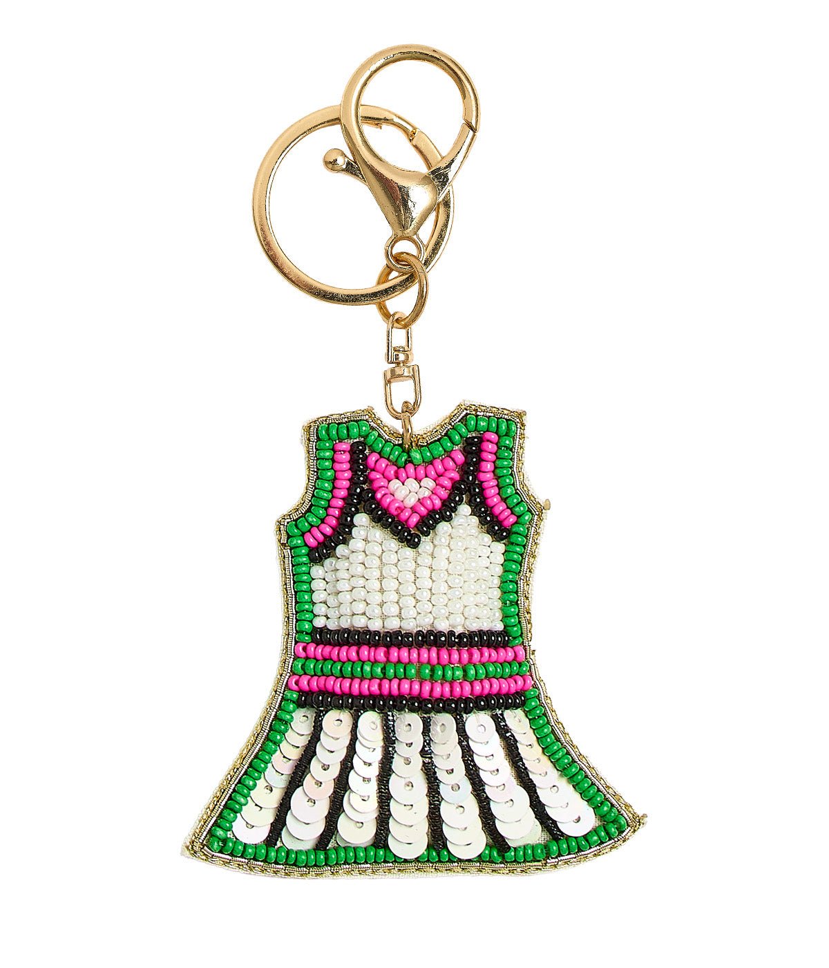 Hand-beaded key chain and bag charm featuring intricate beadwork craftsmanship. This versatile accessory clips securely to any bag, purse, or keyring with a durable gold-tone clasp. Perfect for personalizing your everyday carry or gifting to someone special. Each piece celebrates your favorite things with artisanal detail and timeless appeal. Add a touch of handmade elegance to your accessories collection.