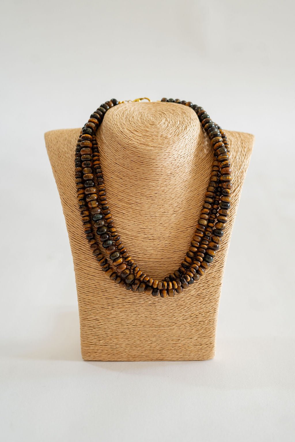 Elevate your everyday style with our Tiger Eye Necklace. Featuring smooth, natural tiger eye beads and an adjustable gold clasp, this necklace brings boho-luxe charm to any outfit. Whether layered or worn solo, it's the perfect accessory for beach days, brunches, and everything in between. Handcrafted with care and made to stand out.