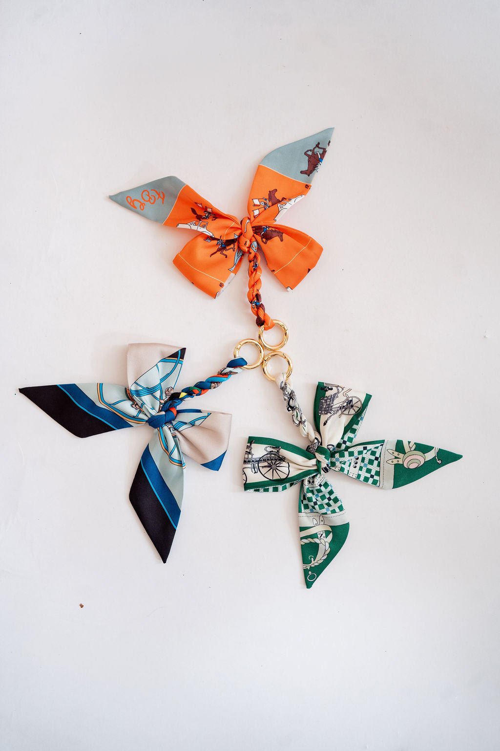 Elevate your everyday carry with this elegant silk scarf bow keychain, designed to add a touch of sophistication to your bag or keys. Crafted from premium silk material, this versatile bag charm features a graceful bow silhouette that complements any style. Perfect for personalizing your accessories, organizing your keyring, or gifting to someone special. The durable construction ensures long-lasting wear, while the compact size makes it easy to attach and carry. Transform your daily essentials into a fashion statement with this timeless scarf key chain accessory.