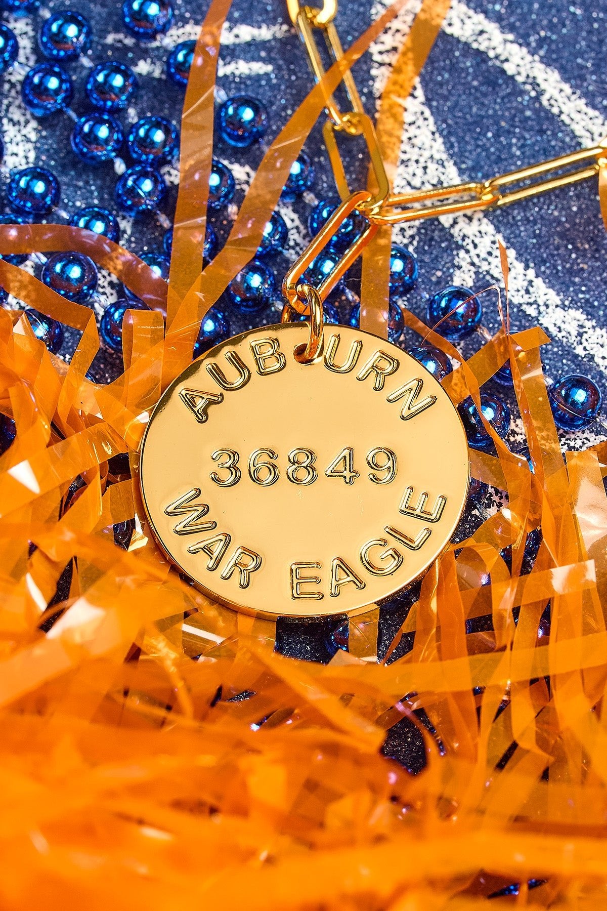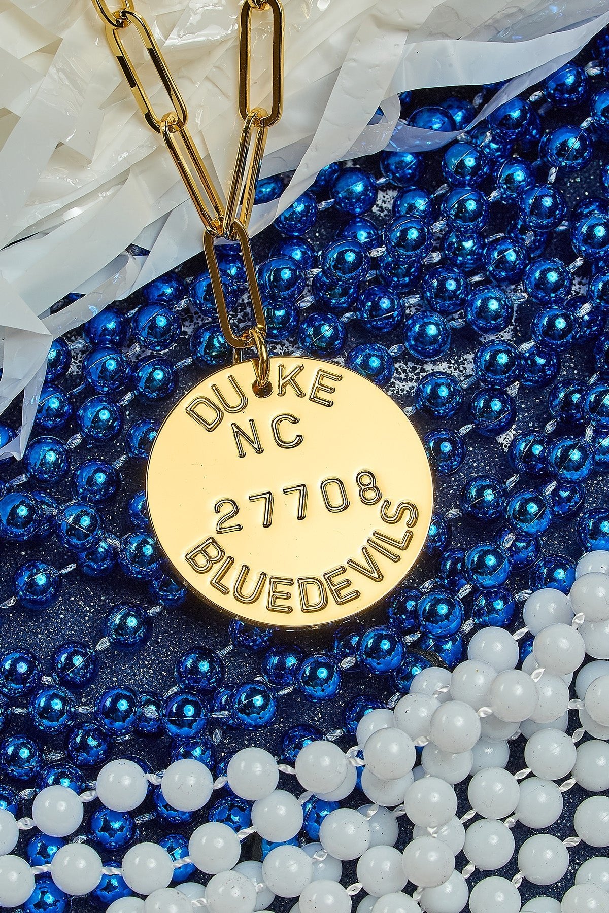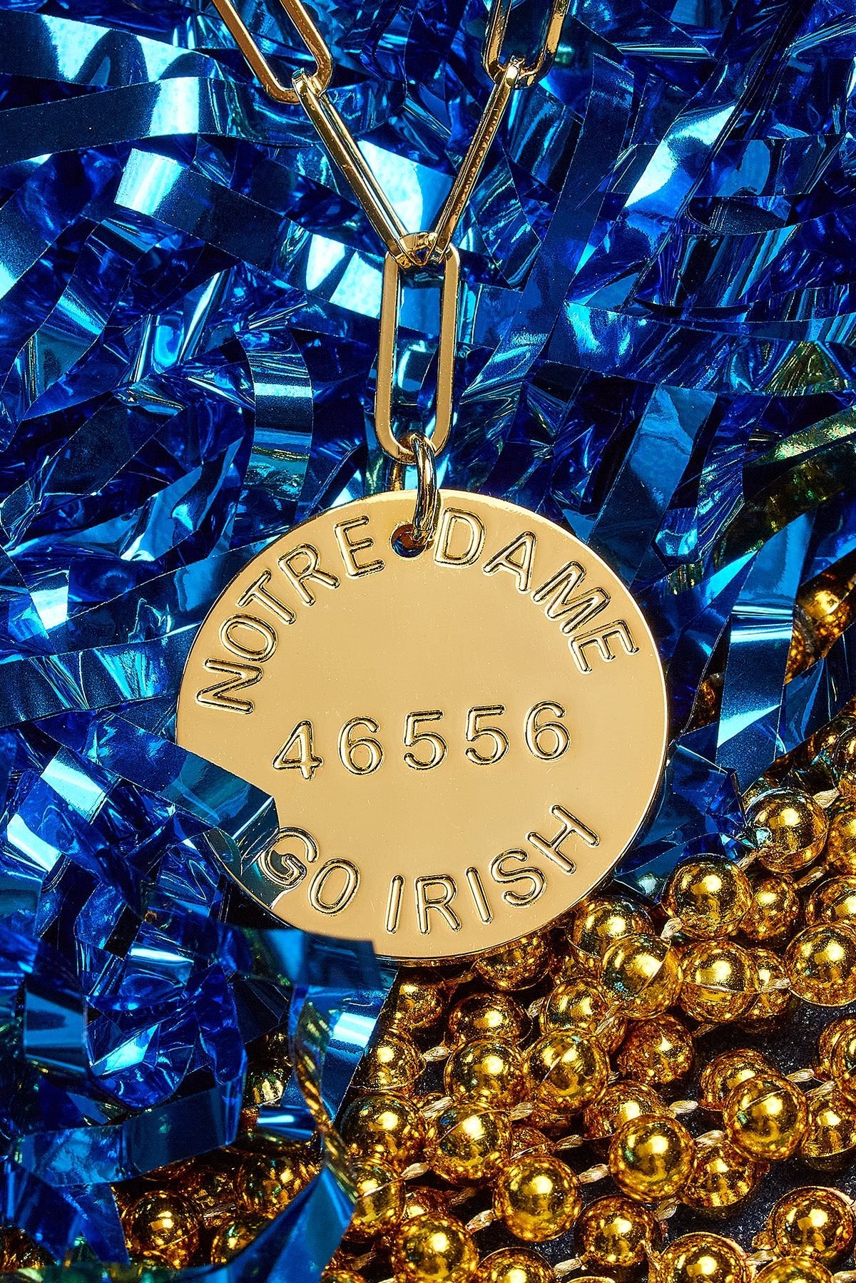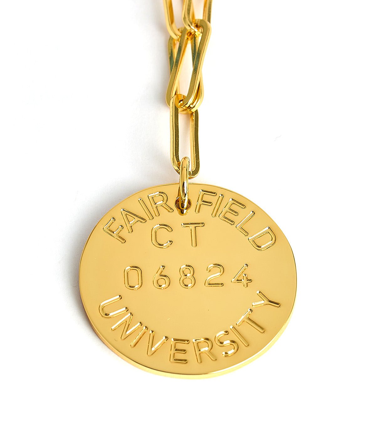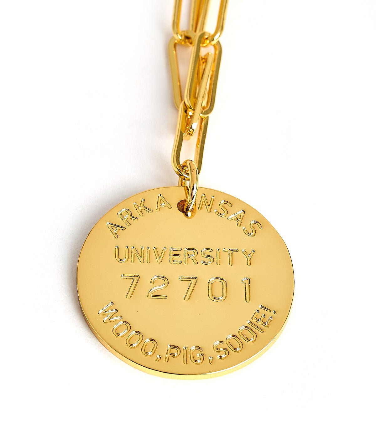 Celebrate your school spirit with a classic charm necklace. Featuring a hand-stamped, vintage-style charm and a chic paperclip chain, each necklace is plated in radiant 18k gold for a luxe, beachy vibe that’s perfect for summer and beyond.