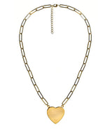 Gold Flat Heart Charm Necklace with Paper Clip Chain - 18k Gold Plated -