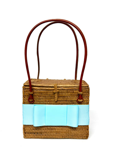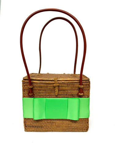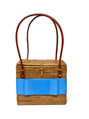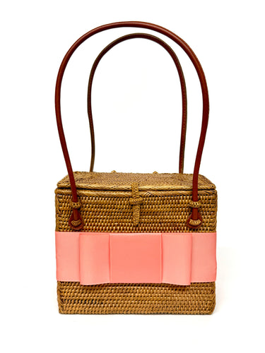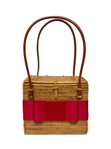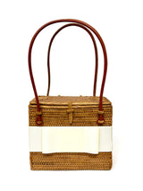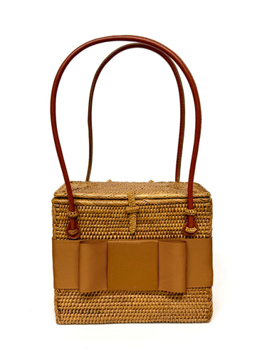 The Lisi Lerch Bali Bag collection is all handwoven by local artisans of the Tenganan region of Bali. Each weaver creates these works of art by using ata grass, a vine indigenous to the foothills of volcanoes on their beautiful Indonesian Island. The bags are then smoked in a coconut and honey fire to achieve their luscious golden hue.
