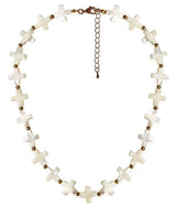 This Diana Necklace is 16 inches of gorgeous teardrop beading and pearl cross. Rhinestone Magnetic Clasp. Handle with Care Handmade Necklace.