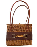 The Lisi Lerch Bali Bag collection is all handwoven by local artisans of the Tenganan region of Bali. Each weaver creates these works of art by using ata grass, a vine indigenous to the foothills of volcanoes on their beautiful Indonesian Island. The bags are then smoked in a coconut and honey fire to achieve their luscious golden hue.