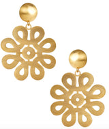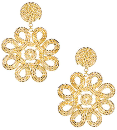 The Cameran Metal Earrings by Lisi Lerch are a statement piece that combines elegance with a touch of nature-inspired design. Crafted from gold-colored brass, these earrings feature a floral motif that adds a preppy pop to any outfit. Measuring approximately 3.75 inches in length and weighing 15 grams, they are designed to be lightweight and comfortable for all-day wear. The earrings are lead and nickel-free, ensuring they are allergy-friendly. They are available in post-back style only, with no clip-on option. Priced at $88.00, they are a versatile addition to any jewelry collection.